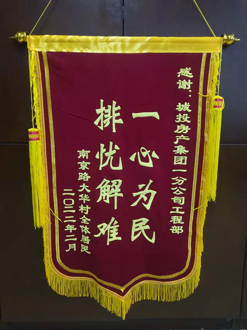 元宵前夕,一幅写有“一心为民 排忧解难”锦旗送到了一分公司,赠送者是大华村住户,他们代表全体居民感谢一分公司急民所急、高效优质的维修服务工作。今年春节期间,一分公司坚持应急维修服务随时“在线”,及时回应住用户报修,从除夕到元宵共疏通下水管道66米、清理窨井13个、除雪150平方米、治漏4处,受益户数50余户。