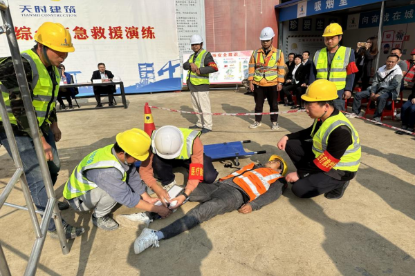 演练从事故报告、启动预案、指挥协调、应急处置,现场抢救、善后处置等环节,模拟了施工现场发生高处坠落、触电及火灾事故的应急演练。在指挥长指挥下,各小组成员各司其责、紧密配合,完整呈现了演练科目的全过程,验证了公司《安全生产事故应急预案》的科学性和实用性,检验了现场应急救援处置能力,达到了检验预案、锻炼队伍、磨合机制、宣传教育、完善准备的目的。