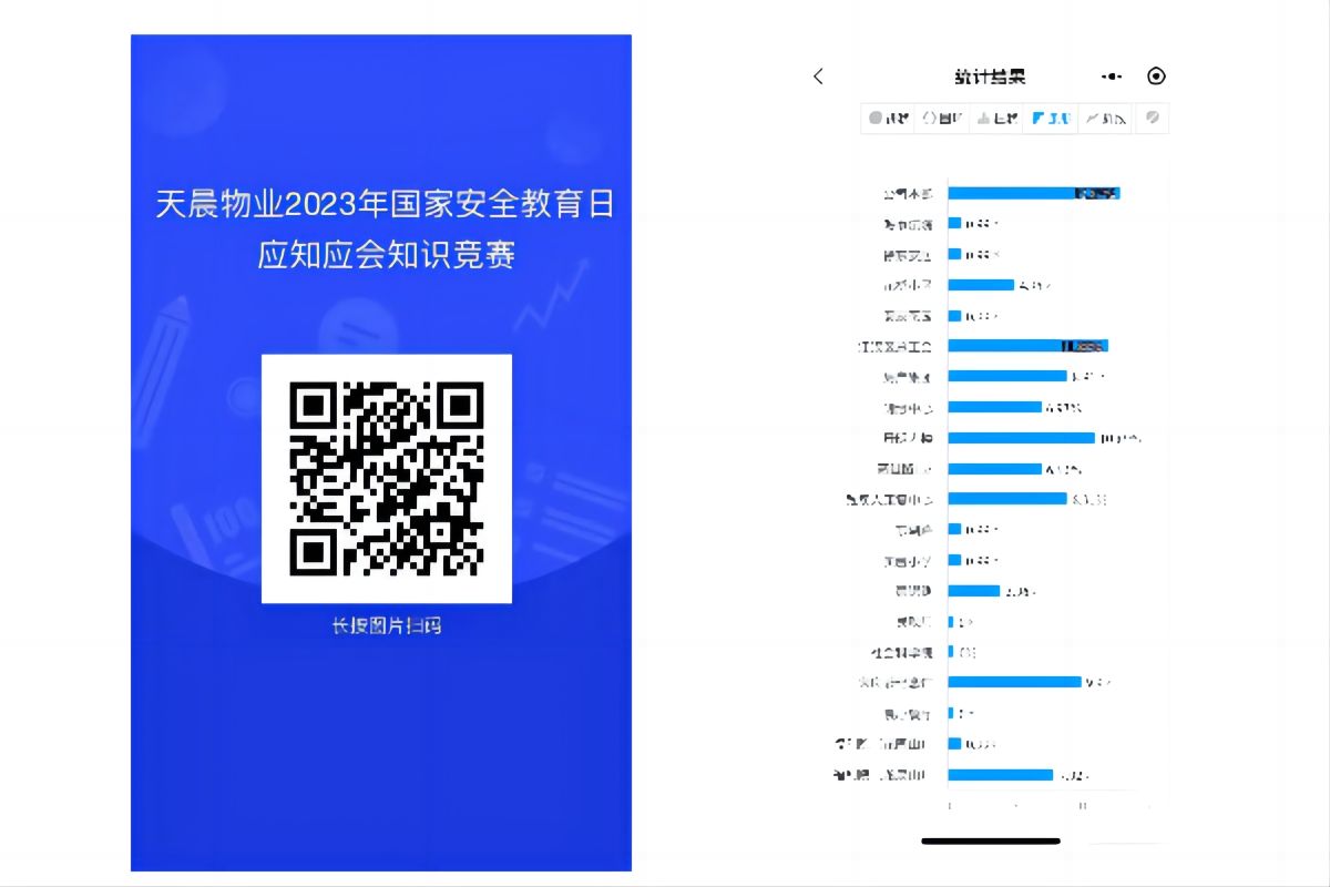 2023年4月15日我们迎来了第八个全民国家安全教育日,在今年“贯彻总体国家安全观,增强全民国家安全意识和素养,夯实以新安全格局保障新发展格局的社会基础”这一主题下,天晨物业为培养全体职工安全法治意识,进一步提高对国家安全知识和国家安全观的认识,筑起更加牢固的国家安全人民防线。4月14至4月16日开展了“安全知识答题暨教育培训活动”,组织全体职工参与线上答题,在审题的过程中对国家安全形势、国家安全任务建立更加全面的了解本次答题在公司19个项目开展,人员覆盖率100%,广泛宣传普及了国家安全知识;天晨物业公众号建立的普法板块同时推送国家安全知识普及视频,进一步拓展知识面。