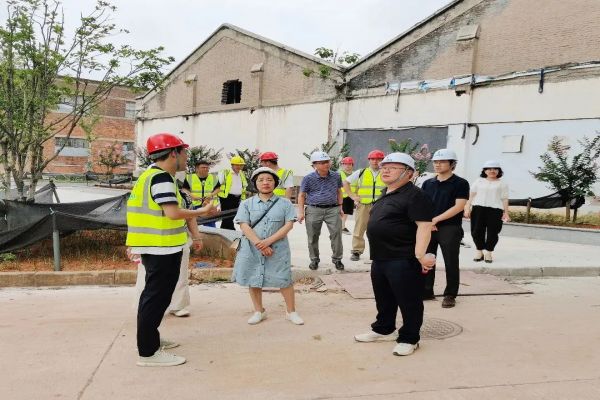 7月29日上午,房产集团公司党委书记、董事长谭萍带队前往天时公司承接的华新水泥厂旧址新青年半岛片区保护展示文保修缮及活化利用项目检查指导工作。房产集团副总经理、天时公司董事长赵征,房产集团副总经理李欢欢、项目管理部部长刘明等陪同检查。